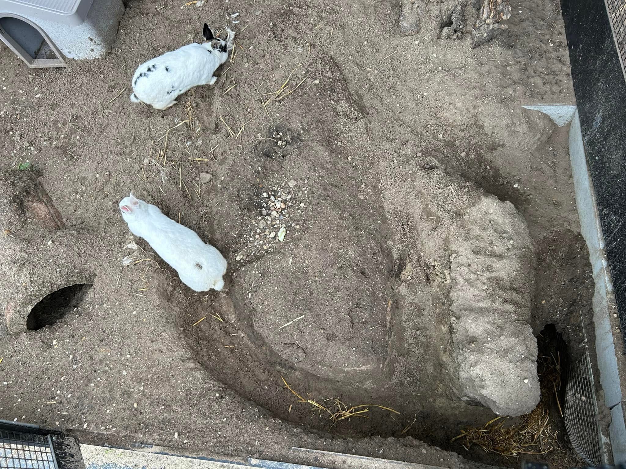 “Ruimte is echt essentieel. Ze moeten kunnen rennen, graven en schuilen.” Het buitenverblijf bestaat deels uit tegels en deels uit zand, met ingegraven gaas zodat ze wel hun natuurlijke gedrag kunnen laten zien, maar niet kunnen ontsnappen. Met warm weer zoeken ze verkoeling in hun holen, met kou werkt dat juist isolerend. Overal zijn schuilplekken, tunnels en regelmatig ligt er een wilgentak om op te knagen.